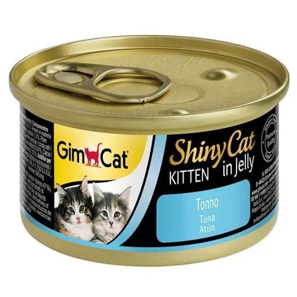 معلبات طعام رطب للقطط الصغيرة من عمر 8 اسابيع من جيم كات تحتوي على قطع التونة مهروسة داخل جيلي (هلام) لذيذ متوازن بين نسبة الفوسفور والكالسيوم المفيدة لهم